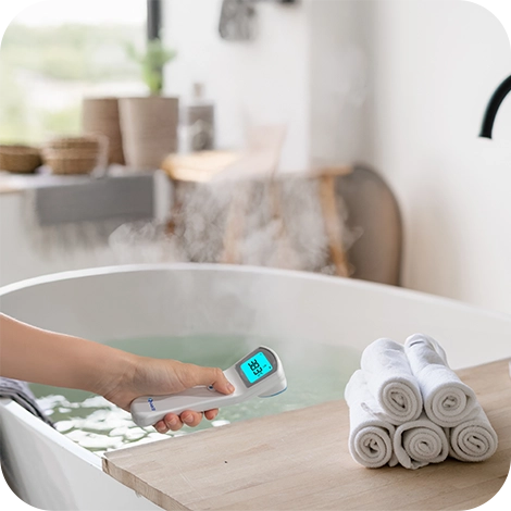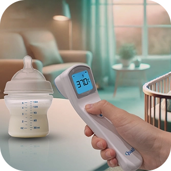 QuallThermo ile vücut sıcaklığını 1 saniyede, temassız olarak ölçün! Bebeğiniz uyurken bile rahatça ölçüm yapabilir, yiyecek, sıvı ve oda sıcaklığını kolayca kontrol edebilirsiniz. 5 farklı ölçüm modu: Bebek, Çocuk, Yetişkin, Yiyecek, Sıvı ve Oda!
